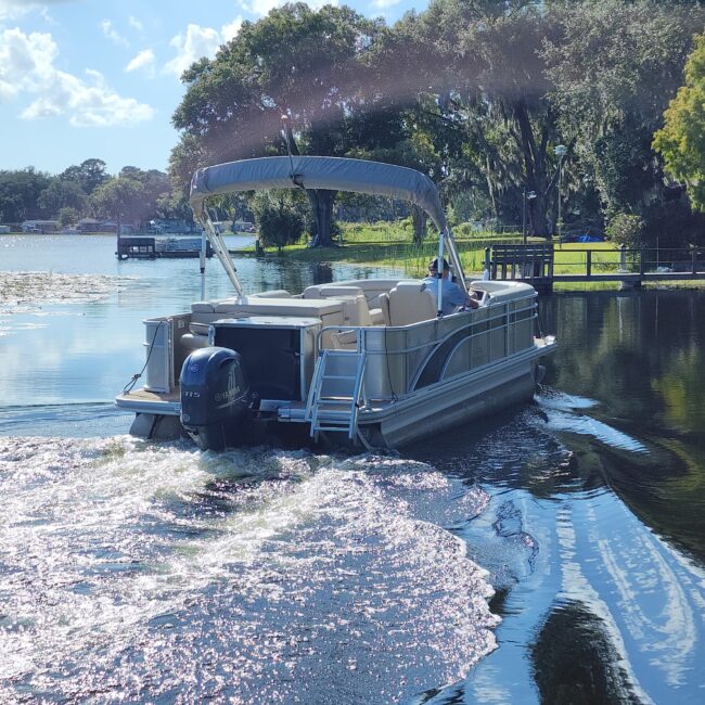 We currently have two boats in our stable: the standard option is our Pontoon Boat. We also have a shallow-water boat to get to those harder reach areas for hunting trips.